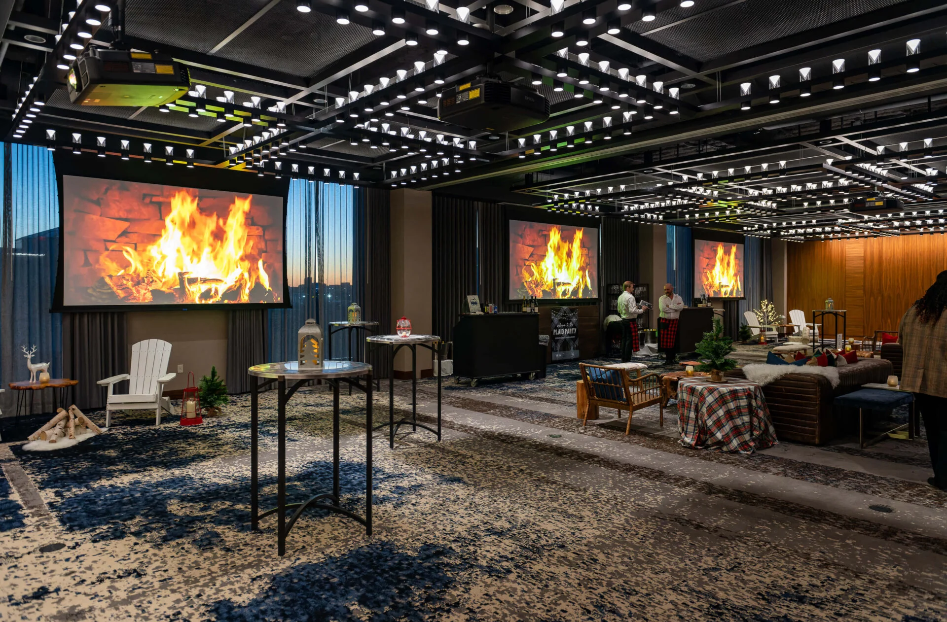 Joseph T. O’Callahan Ballroom features floor-to-ceiling windows with water views, modern dimmable lighting, and a spacious floorplan.